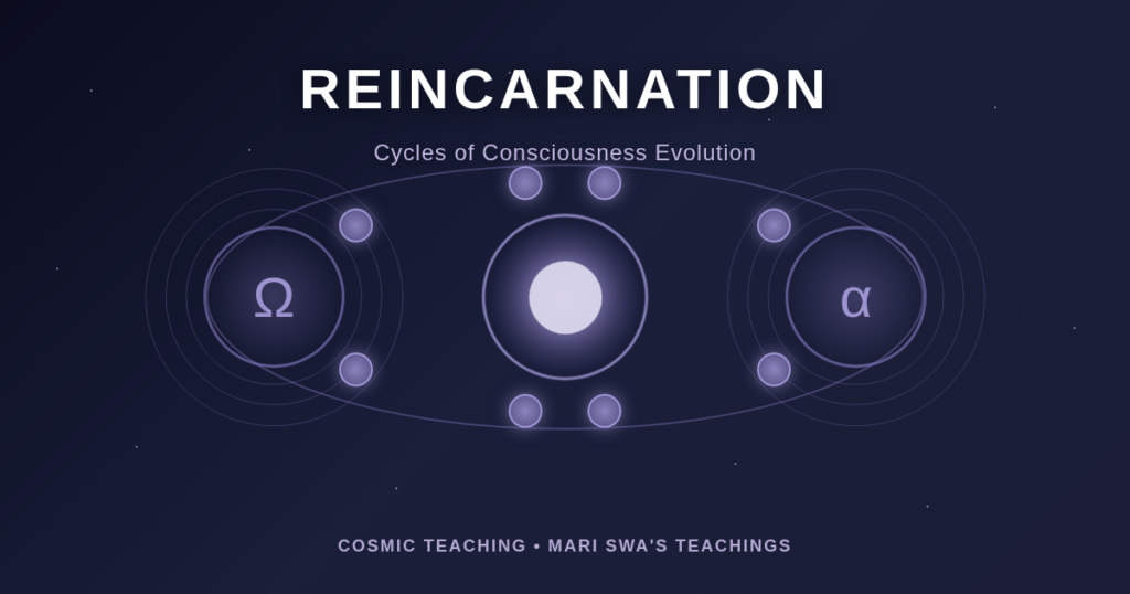 According to Mari Swa’s teachings, consciousness expands dramatically after death, reuniting with the higher self in higher existential planes where linear time does not apply. The soul reviews its life, integrates the experiences, and — if choosing to return to physical reality — may plan the next incarnation from that expanded perspective.